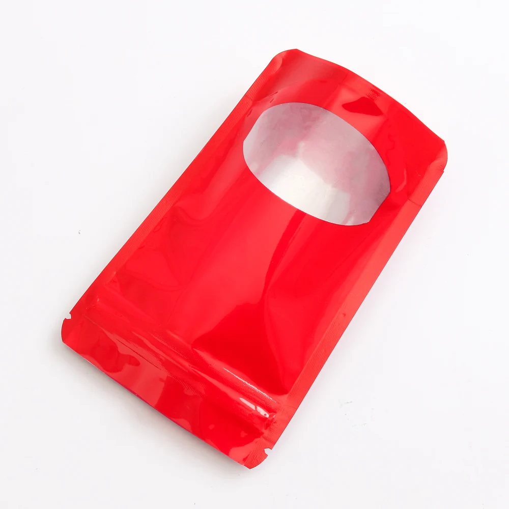 WISHDIAM 100 шт. многоразовая сумка на молнии из майлара, прозрачное окно, защита от запаха, алюминиевая фольга, Глянцевая красная молния, замок, с...