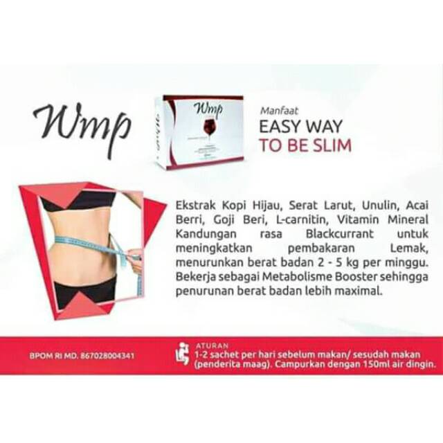 WMP adalah minuman serbuk dalam kemasan sachet yang mengandung kopi hijau dan beberapa bahan alami lainnya serta dikombinasikan dengan vitamin dan mineral dengan rasa blackcurrant, bekerja sinergis dalam meningkatkan pembakaran lemak tubuh (metabolism booster) sehingga penurunan berat badan menjadi lebih efektif.