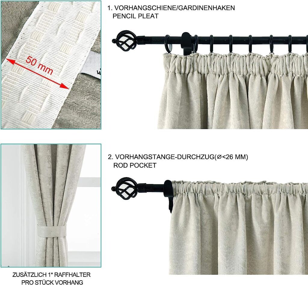 WOLTU 1×гардина, непрозрачная, с рюшами, 135x245см, темно-серый