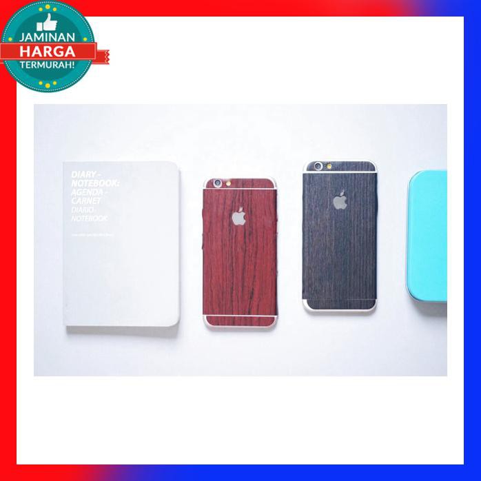 Sticker dengan motif kayu yang ditempel dengan menggunakan lem double tape, menutupi seluruh badan HP sehingga HP terlihat bercorak kayu. Lem tidak akan membekas ketika dilepas