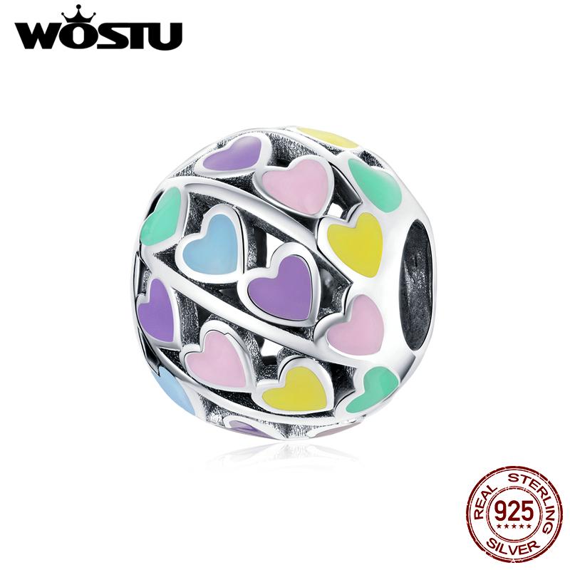 WOSTU 925 пробы серебро красочные сердечки Шарм бусины для оригинальных 3 мм браслеты и ожерелья DIY ювелирные изделия серебряный