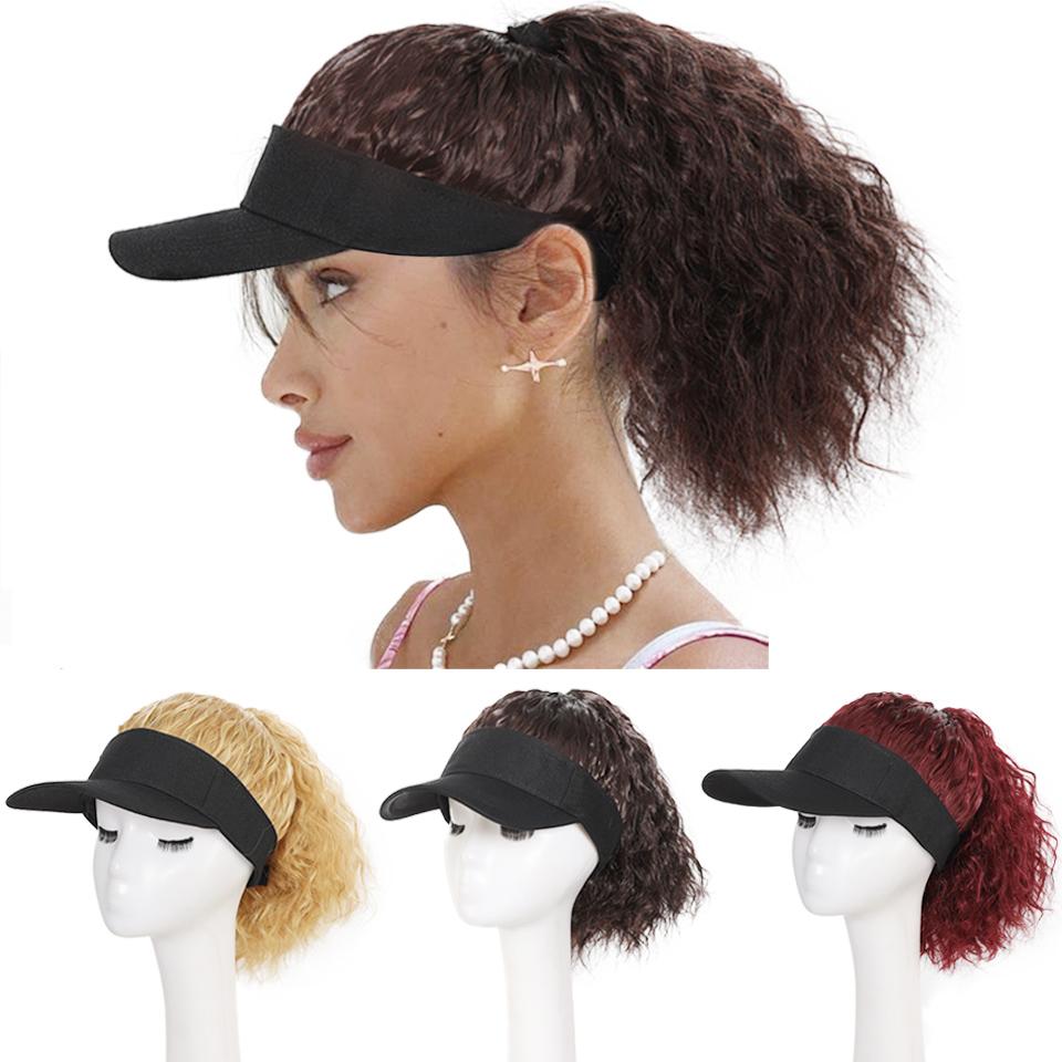 WTB Лето/осень парик-шляпа синтетический парик женская мода черный топлес шляпа от солнца волнистый пушистый высокий хвостик шляпа парик 30CM