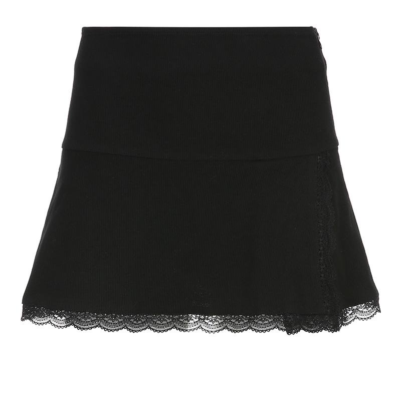 WTEMPO Брендовая ретро повседневная модная уличная однотонная кружевная юбка с тонкой строчкой и высокой талией, пикантные юбки для девочек M чёрный
