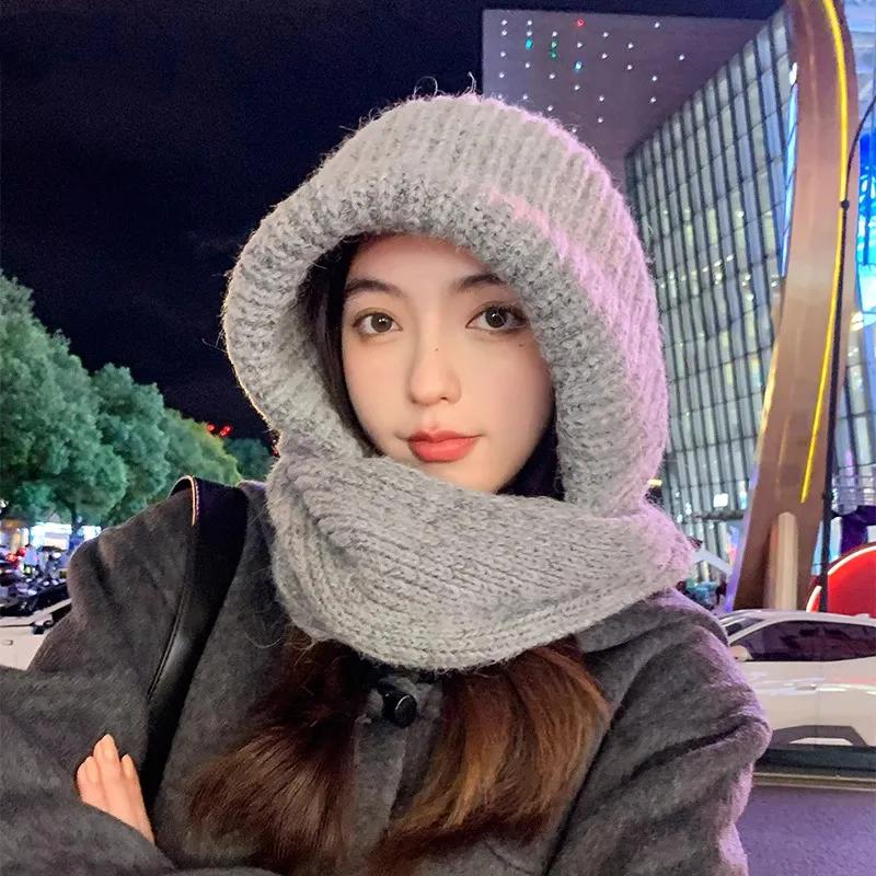 WTEMPO Ветрозащитный эластичный вязаный шарф-шапка, женская теплая зимняя защита ушей, утолщенная универсальная однотонная шерстяная шапка One Size светло-серый