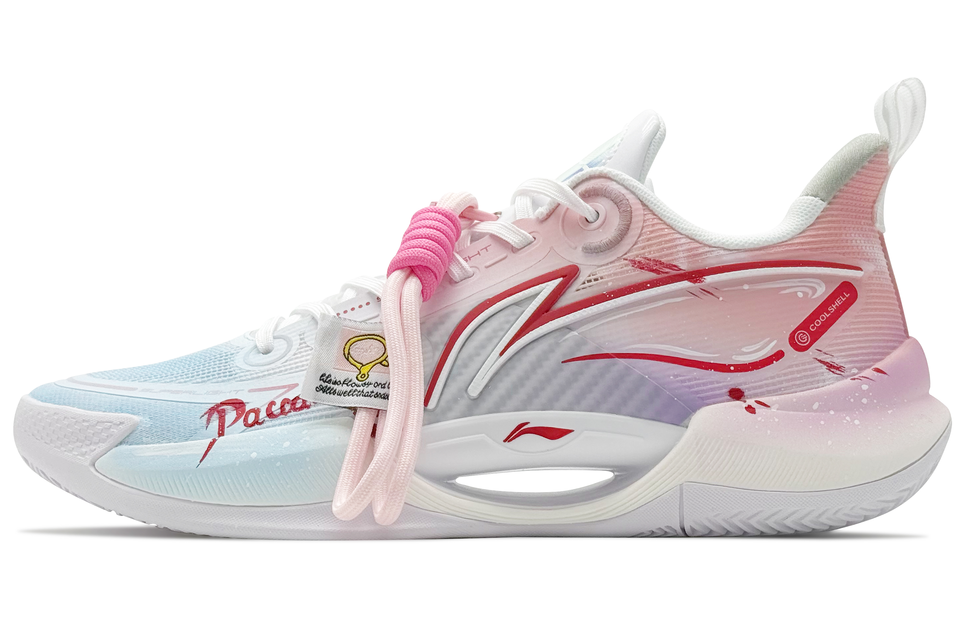 LINING Баскетбольные кроссовки Super Light V2 с амортизацией, противоскользящие и износостойкие, низкие, мужские, сине-розовые