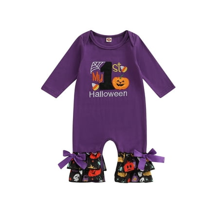 ZIYIXIN Newborn Baby Girl My 1st Halloween Outfit Pumpkin Long Sleeve Romper Bodysuit Flared Pants Jumpsuit One Peice Clothes Purple 18-24 Months