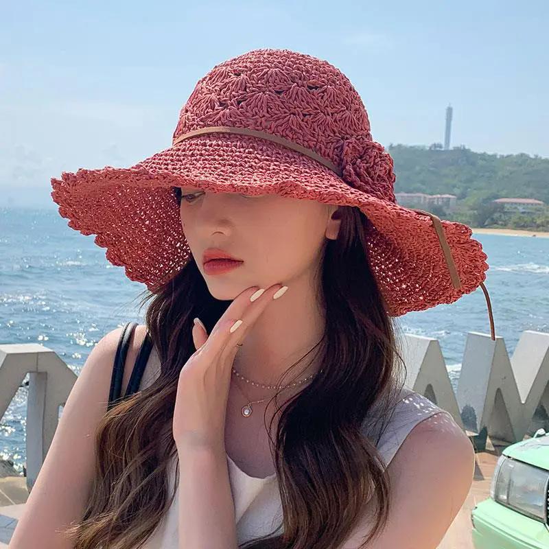 WTEMPO Дышащие цветочные весенне-летние шляпы от солнца женские повседневные элегантные универсальные широкополые дорожные пляжные шляпы 1pc темно-розовый