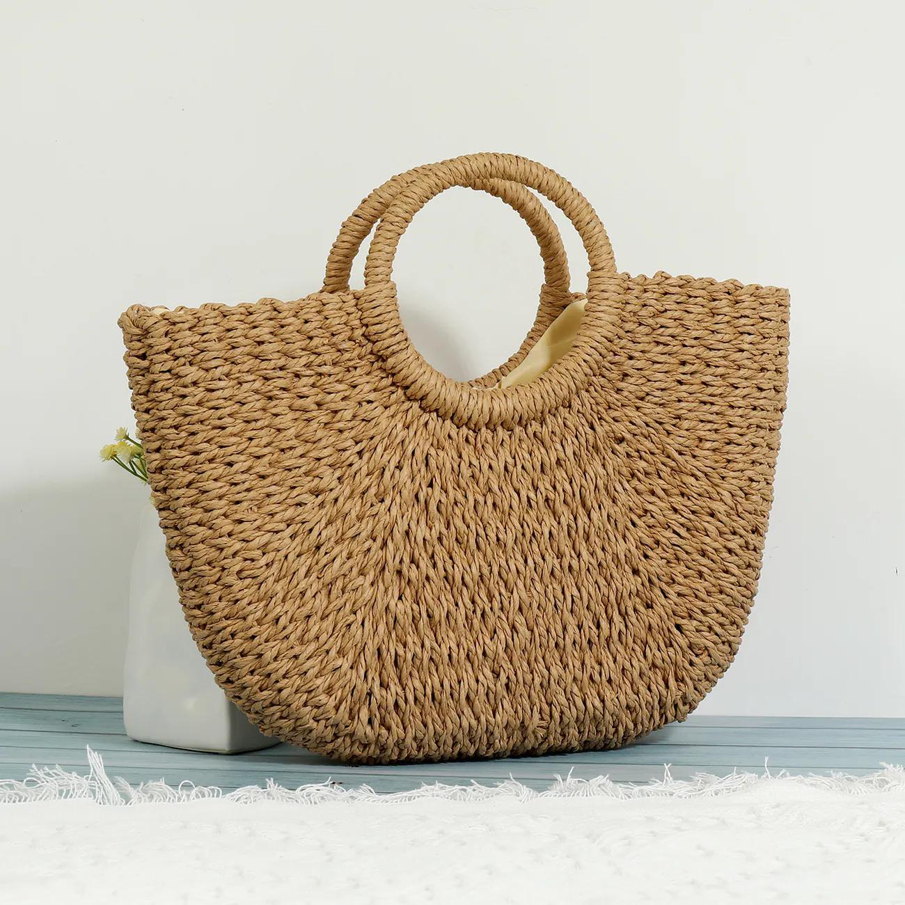 WTEMPO Женская винтажная соломенная сумка ручной работы, женская однотонная праздничная сумка, соломенная сумка из ротанга, пляжная сумка ручной работы 1pc хаки