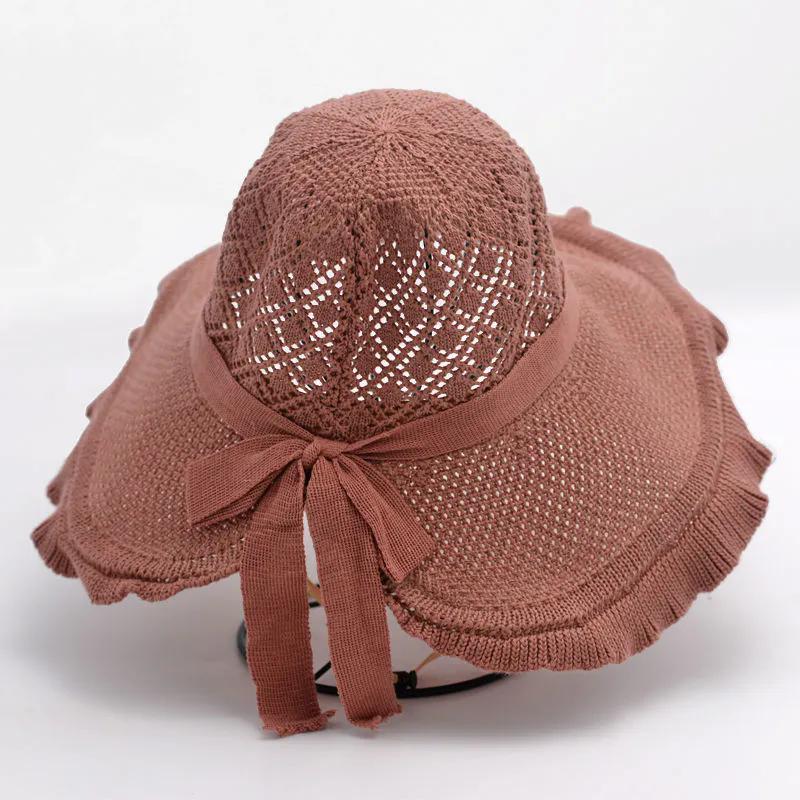 WTEMPO Женские дышащие широкополые шляпы с бантом, однотонные, элегантные, повседневные, складные, летние, солнцезащитные шляпы для отдыха на природе 1pc темно-розовый
