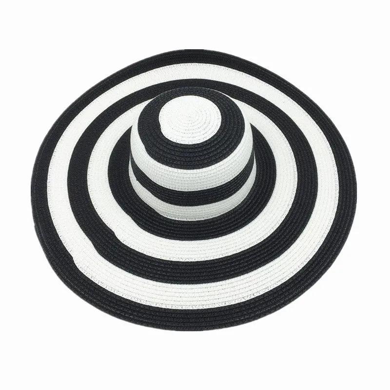 WTEMPO Женские простые однотонные шляпы от солнца в полоску с широкими полями, повседневные для отпуска, пляжные, морские, солнцезащитные шляпы One Size чёрный