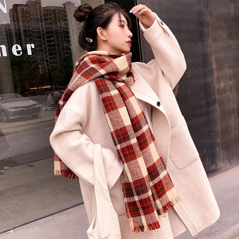 WTEMPO Женские ретро элегантные клетчатые шарфы Осень Зима Повседневный универсальный шарф Шали Защищающие от холода Ветрозащитные Теплые Уличные шарфы 1pc красный