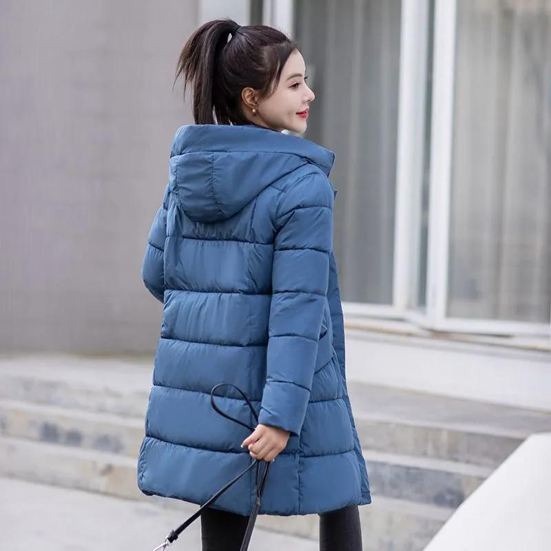 WTEMPO Женские свободные пуховики больших размеров, утолщенные плюшевые пальто с хлопковой подкладкой, однотонные хлопковые пальто на молнии с карманами XXL синий