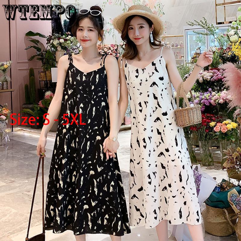WTEMPO Летнее женское платье больших размеров Облегающее талию Пляжное платье с темпераментом Свободное цветочное платье с принтом