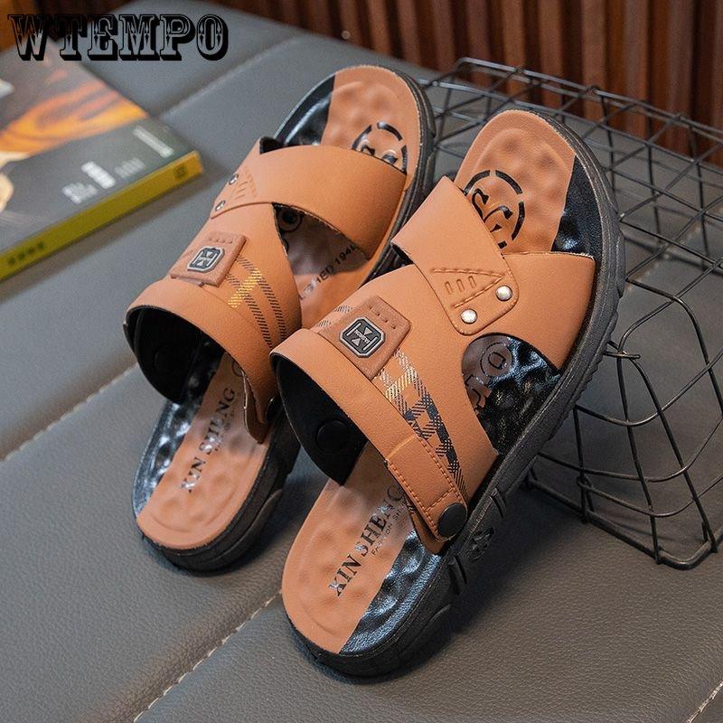 WTEMPO Мужские летние сандалии с мягкой подошвой, полые шлепанцы с толстой подошвой, уличная приморская пляжная обувь, домашние нескользящие тапочки, пригодная для носки походная обувь 40 коричневый