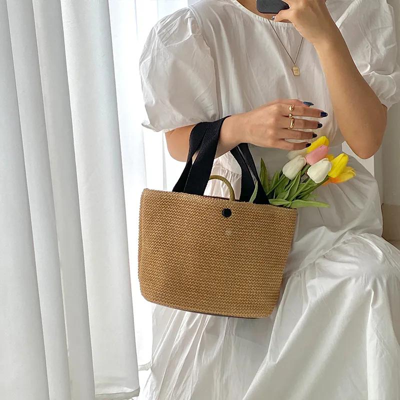 WTEMPO Новое Пасторальное Плетение Модная Ретро Соломенная Плетеная Летняя Пляжная Сумка для Отпуска Модная Женская Сумка 1pc чёрный