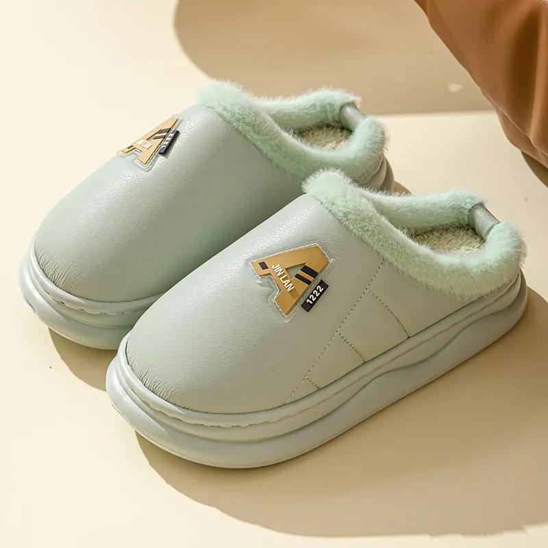 WTEMPO Пара теплых тапочек из искусственной кожи на толстом плоском каблуке, закрытый носок, осенне-зимние хлопковые домашние плюшевые тапочки 40-41 зелёный