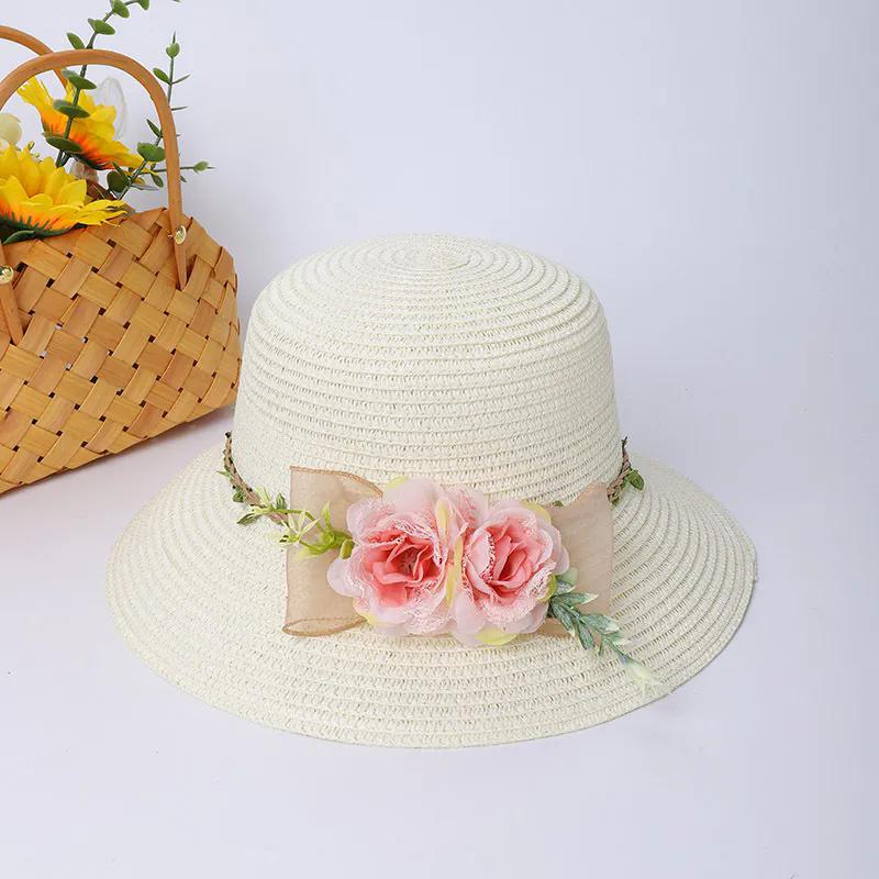 WTEMPO Повседневные дышащие шляпы от солнца с цветком, женские летние широкополые универсальные солнцезащитные шляпы для отдыха на природе 1pc белый