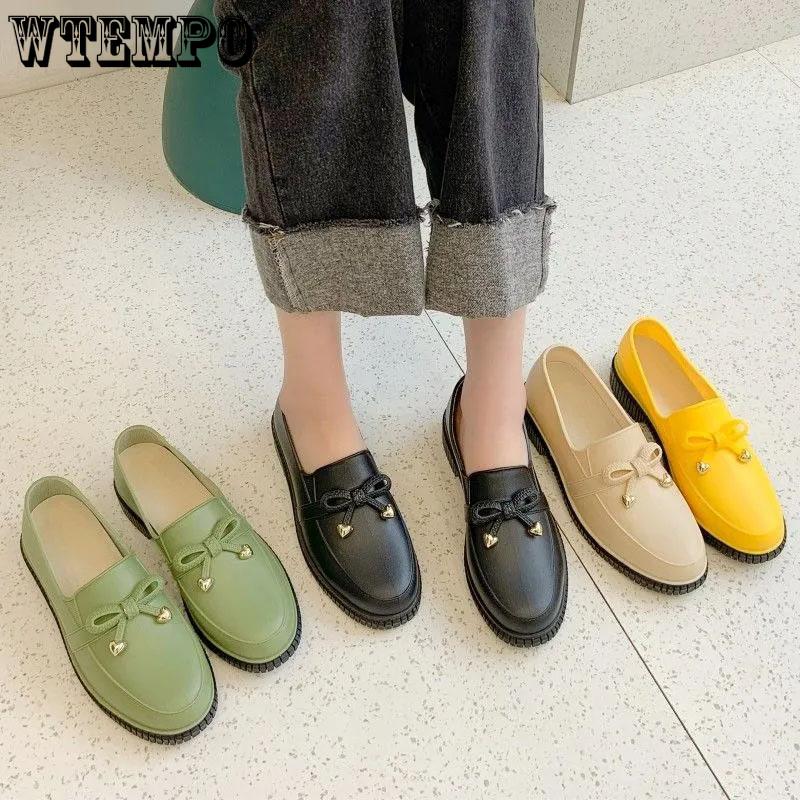 WTEMPO женская модная непромокаемая обувь на низком каблуке, уличная противоскользящая водонепроницаемая универсальная резиновая обувь с короткими трубками и бантом, дропшиппинг, оптовая продажа 36 чёрный