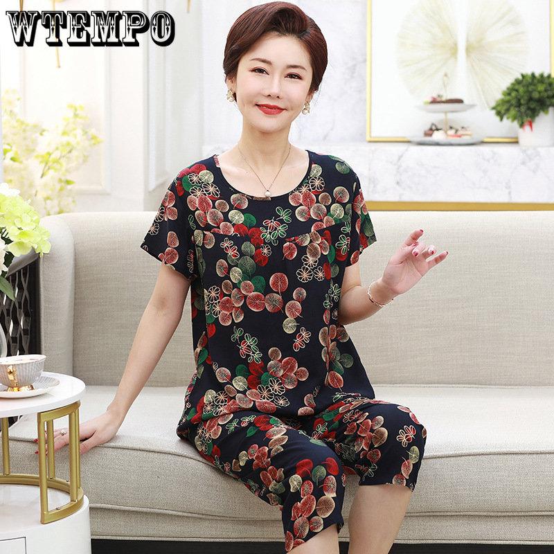 WTEMPO летний комплект из двух предметов для мамы, одежда для бабушки большого размера, футболка с короткими рукавами, комплект брюк, домашняя одежда 4XL