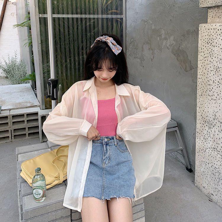 WTEMPO шифоновая рубашка женская летняя тонкая рубашка с защитой от солнца однотонная повседневная верхняя одежда уличная универсальная рубашка винтажная женская одежда S