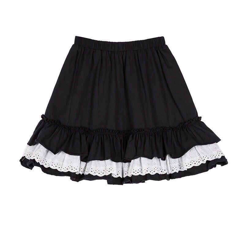 WTEMPO Kawaii кружевные юбки Лолиты женские Harajuku винтажные рюши в стиле пэчворк мини-юбки с эластичной резинкой на талии мягкая японская уличная одежда для девочек One Size чёрный