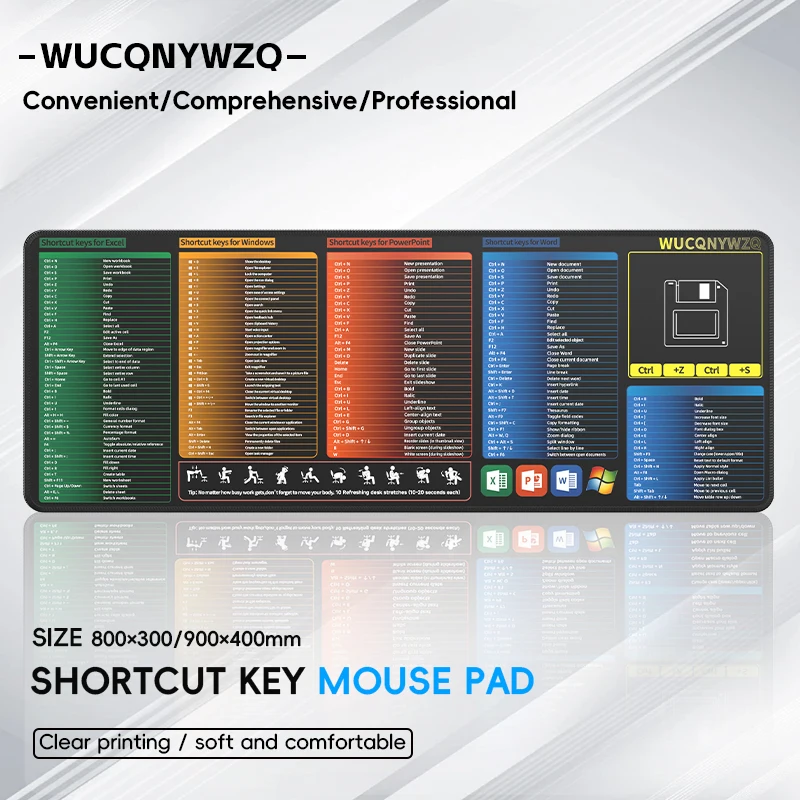WUCQNYWZQ Excel Shortcut Keys Mouse Pad - Non-Slip PC Office Spreadsheet Keyboard Mat windows Large Cheat Sheet Gaming Mousepad