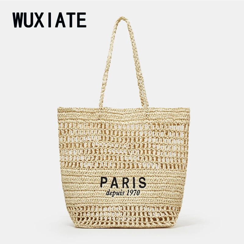 WUXIATE новая вышитая Соломенная Сумочка с надписью Женская вместительная плетеная Сумка через плечо маленькая корзина для овощей