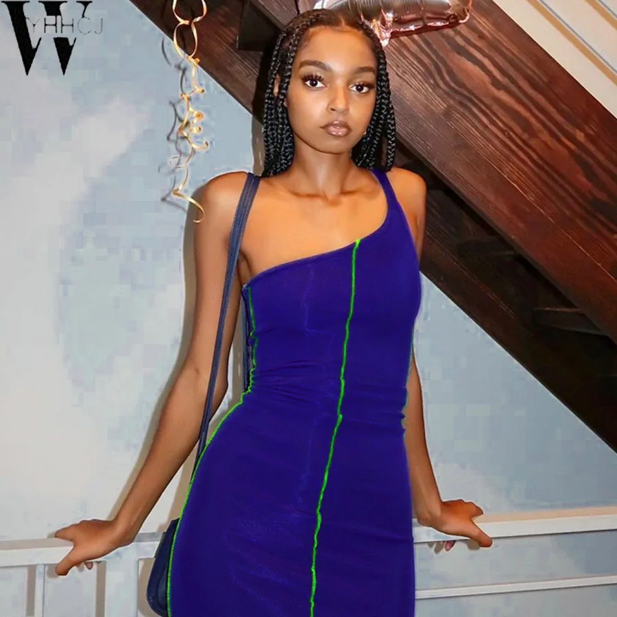 WYHHCJ 2020 облегающие Женские обтягивающие платья на одно плечо пэчворк сексуальные горячие летние 2020 без рукавов вечерние Клубные мини платья...
