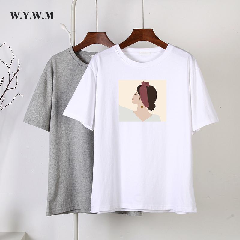 WYWM винтажная футболка с графическим рисунком женская летняя повседневная хлопковая футболка больших размеров с принтом Harajuku шикарный пуловер с короткими рукавами топы для девочек