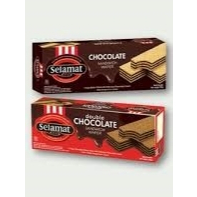 Selamat Sandwich Wafer Chocolate dan Double Chocolate merupakan snack wafer dengan lapisan krim cokelat yang tebal di antara setiap wafer.