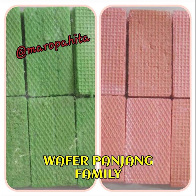 wafer family dengan rasa pandan dan strawbery, enak dan nikmat. Yang di kemas dengan premium sehingga menghasilkan snack yang lebih higienis