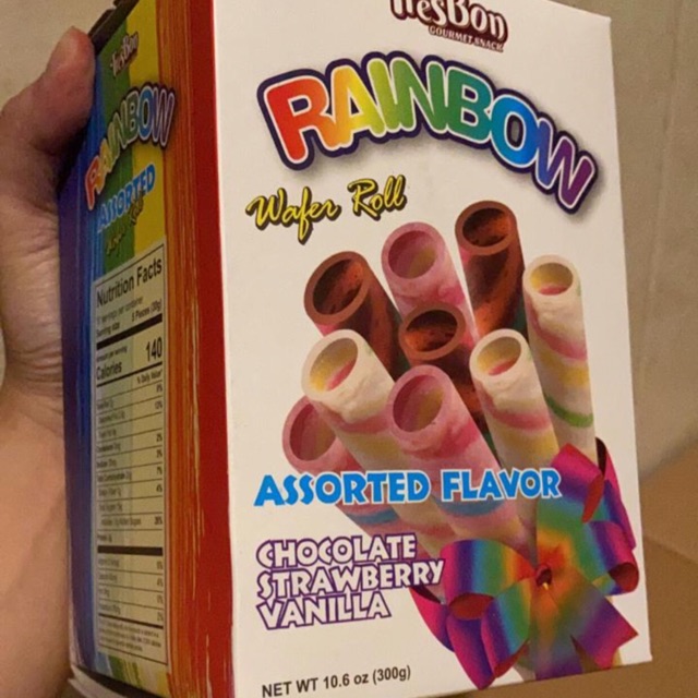 Wafer roll rainbow dgn rasa coklat strawberry dan vanila