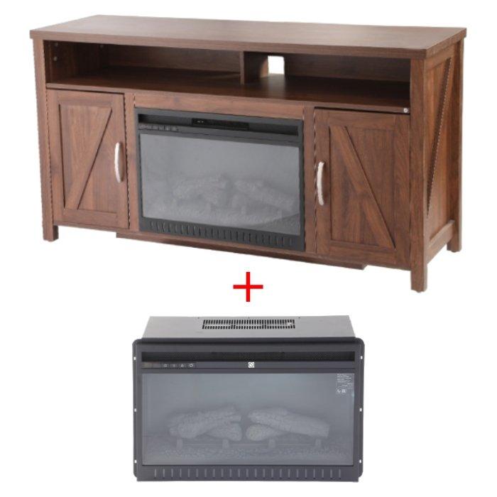 Wansa 65" tv stand with electric fireplace - walnut brown (a-001ft) + fireplace in...