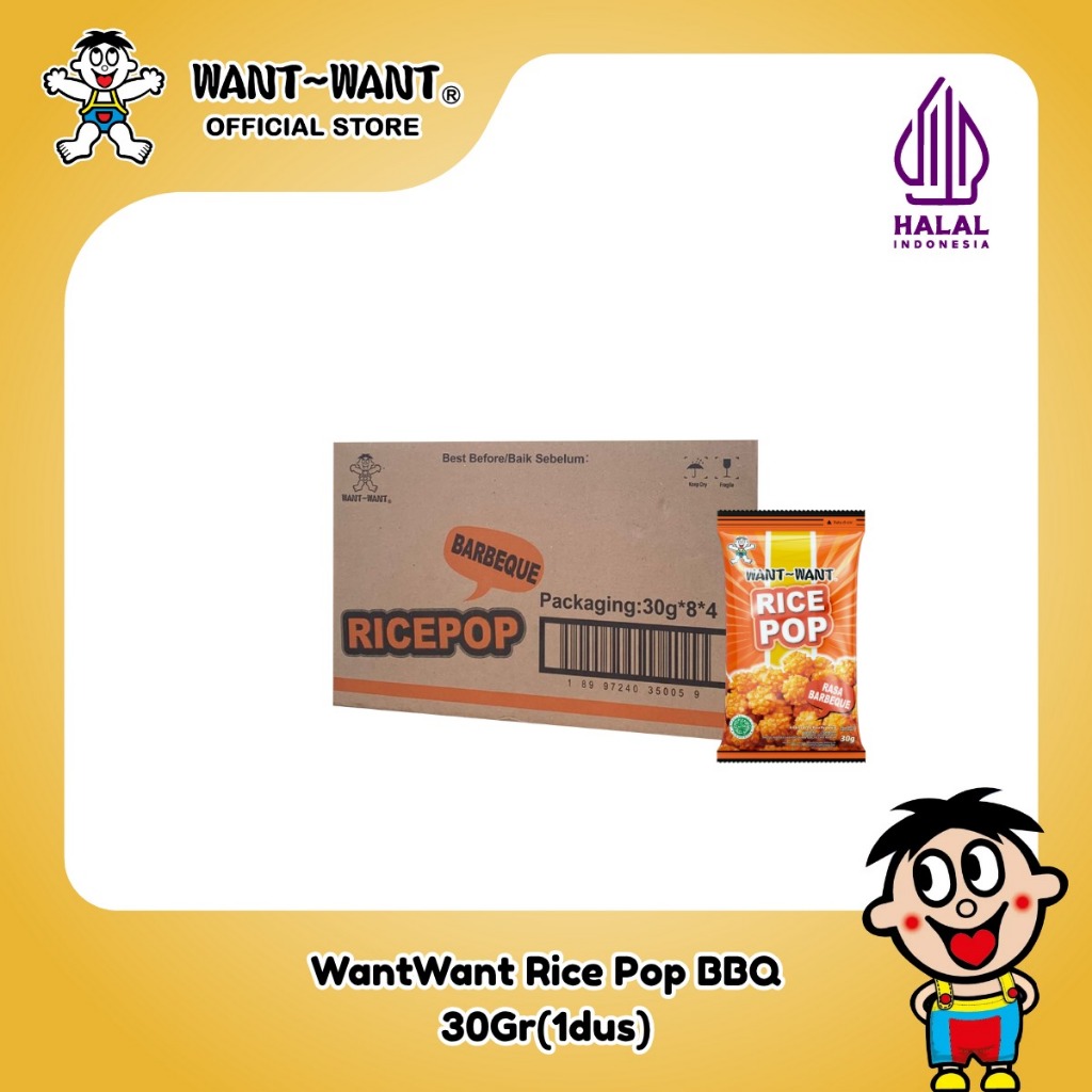 Want Want Snack Beras Rice Pop Rasa Barbeque 30Gr x 32 ( 1 dus ) | Rice Crackers