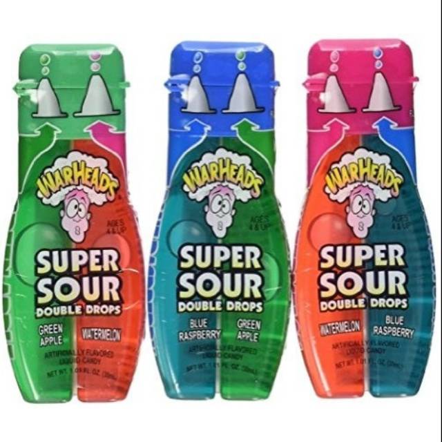 Warheads Super Sour Double Drop Candy Apple Watermelon Blue Raspberry Permen Asam