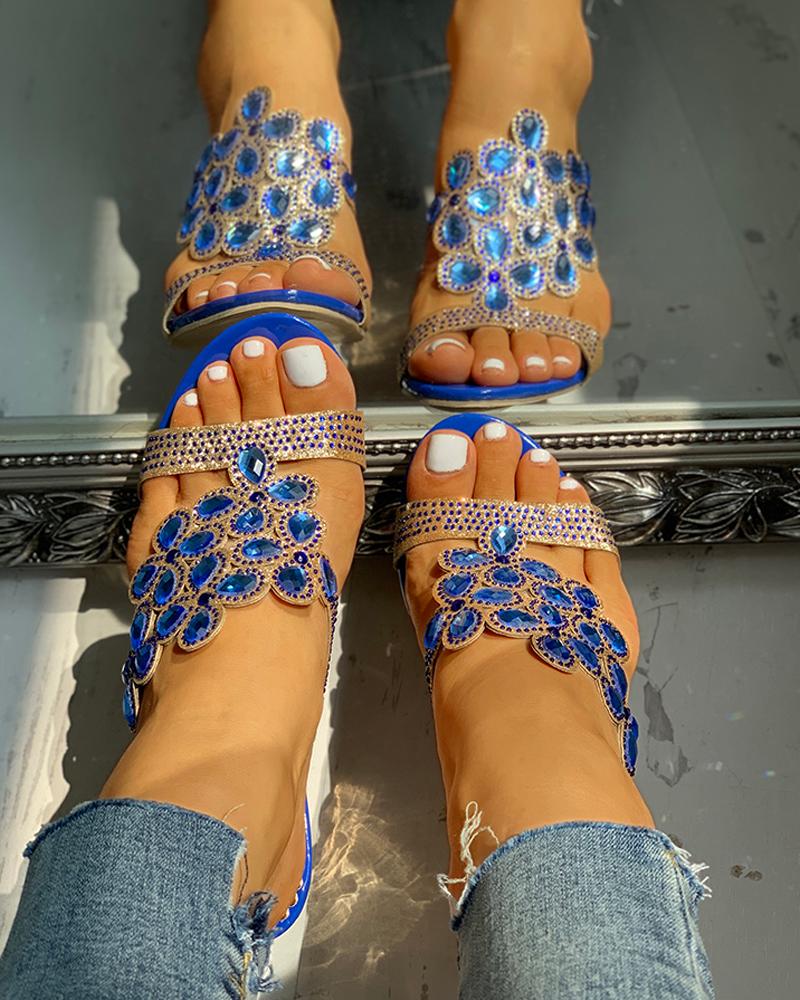 Waterdrop Rhinestone Chunky Heeled Sandals, Dark blue