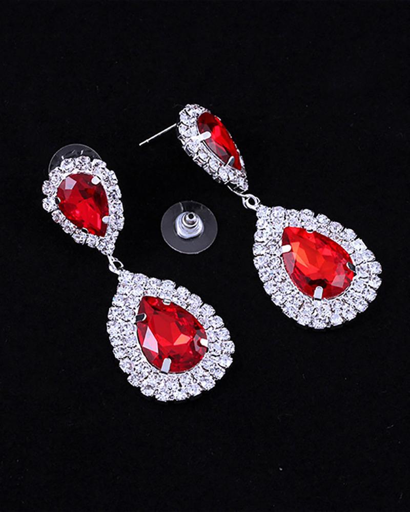 Waterdrop Rhinestone Drop Earrings, Red