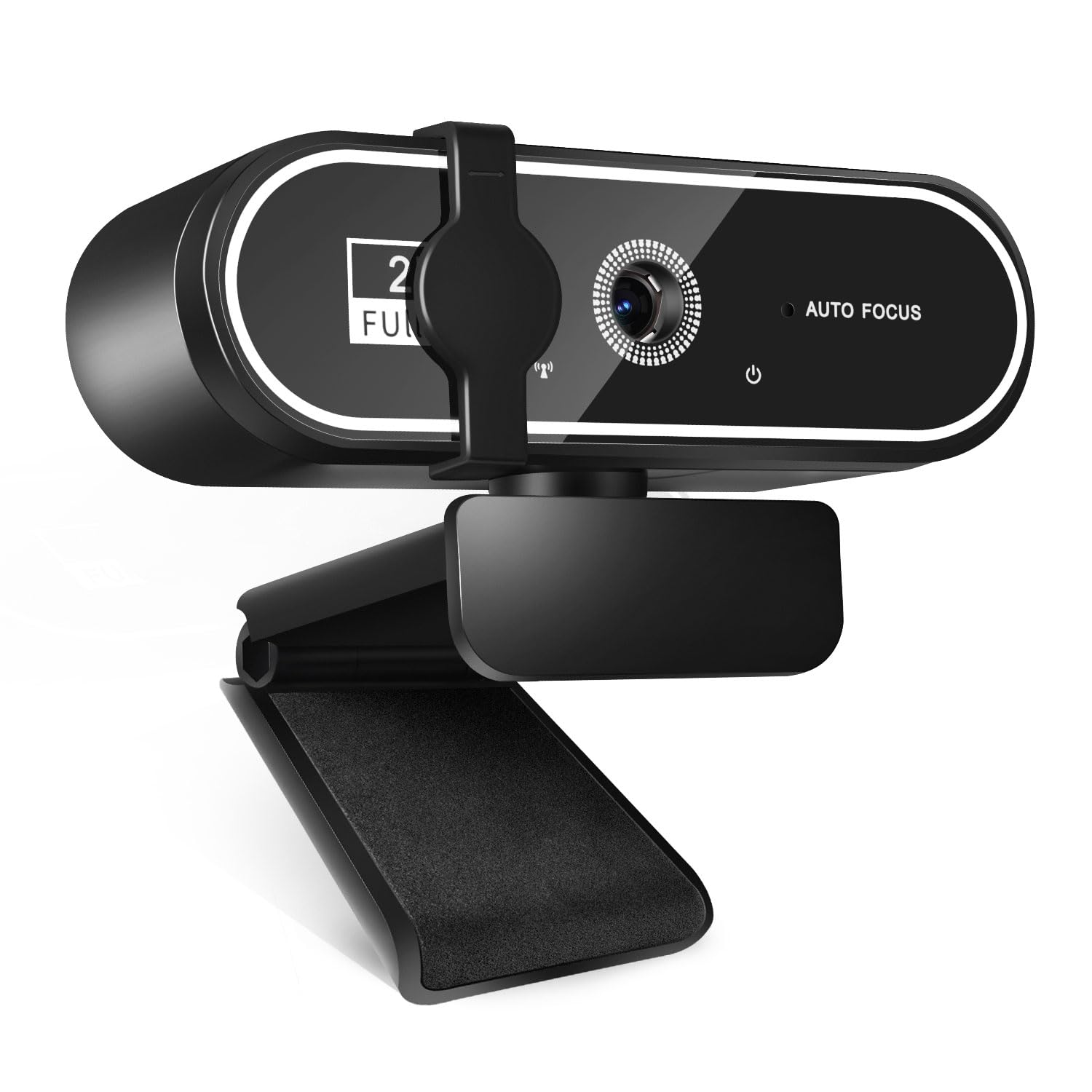 Webcam Web Camera Full HD 2K 4 Megapixels Streaming Automatic Light Correction Microphone Conference PC Camera Inch Tripod Hole Widely Compatible with чорний