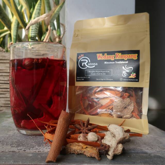 Komposisi: Kayu secang serut, Jahe, Kunyit, Kayu Manis, Bunga Lawang, Cengkeh, dan Kapulaga.