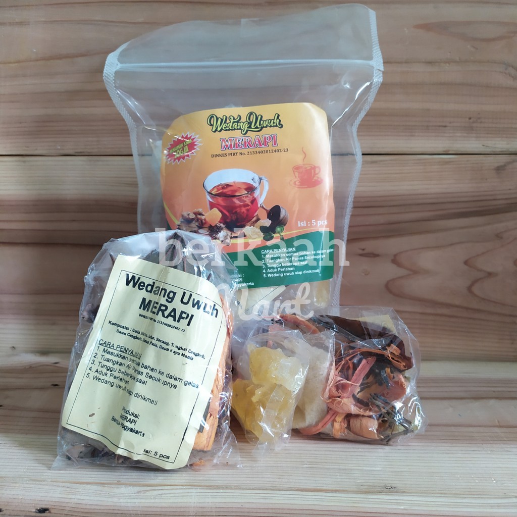Wedang Uwuh Merapi merupakan wedang uwuh instant yang dikemas dalam standing pouch. Dalam satu pouch isinya 5 sachet.