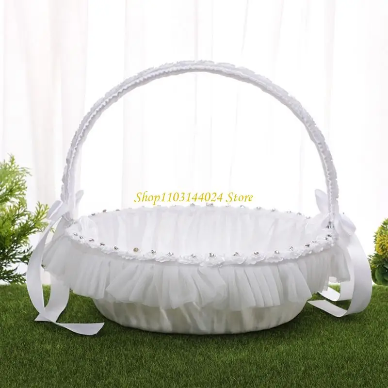 Wedding Flower Girl Basket Simple Lace for Rhinestone Collection Royal Design with Lace Flowers Roses Ig Popular for Par
