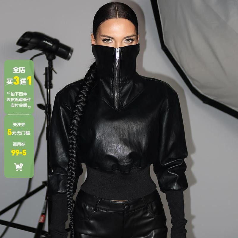 Weekeep Мода Уличный Черный Крутой Красивый Локомотивный Стиль Воротник-стойка Молния Кожаное Пальто для Женщин Приталенный Пуловер Осень и Зима