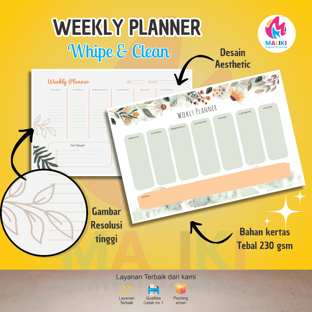 Poster Weekly Planner Wipe & Clean hadir untuk bantu kamu lebih teratur, fokus, dan produktif setiap minggu!