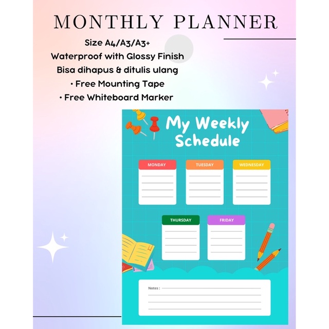 Wipe & Clean Planner bisa jadi teman produktif kalian nih, ukuran sesuai kebutuhan kalian dan dapat dijadikan wall planner lho