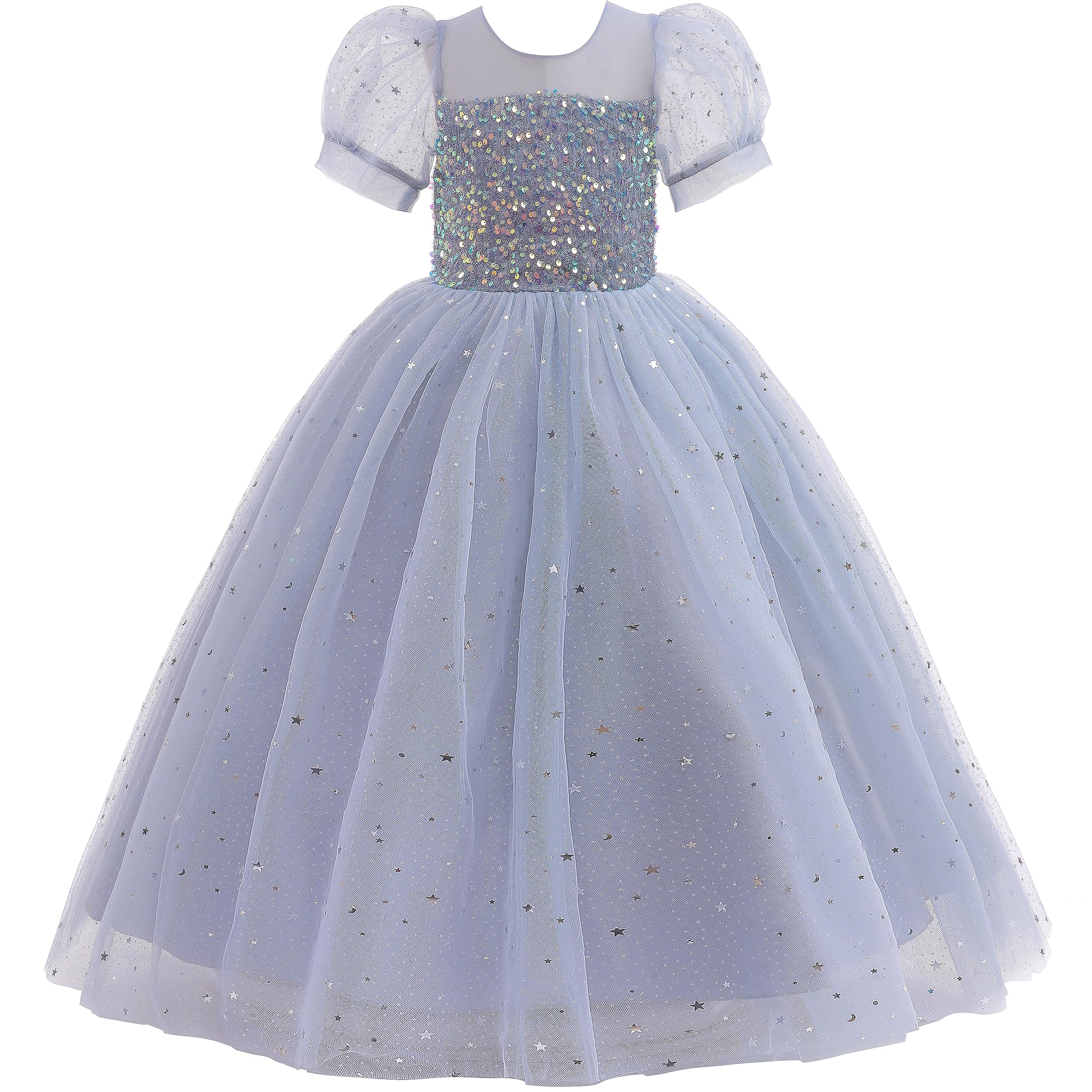 Weileenice Серый Размер для Пышного Платья для Девочки, 130, Длинное, Для Девочек, Свадьбы, Концерты, Формальное, Вечеринки, Тюль, Пайетки, Рукава, Платье, Сити-Го-Сан, серый