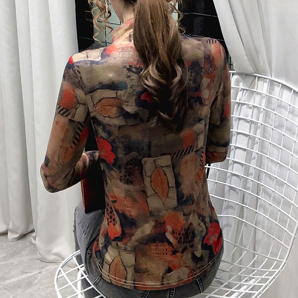 2021 new spring summer european clothes t-shirt women chic mock neck print graffiti flower bottoming shirt girl tees t0n410a qfos, White