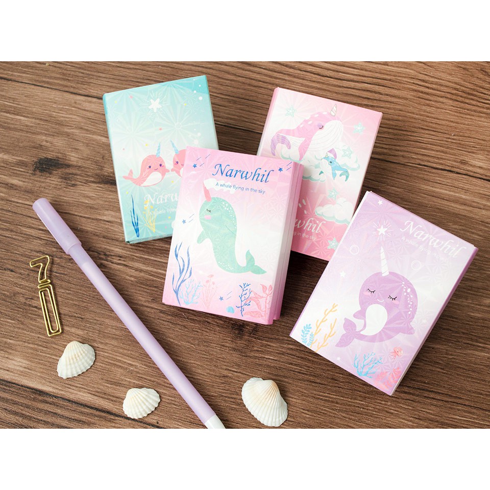 Berbeda dengan teman-temannya, Narwhil, si paus narwhal ini tidak tinggal di laut tetapi di langit! Koleksi Whale in the Sky Sticky Notes Set menghadirkan catatan tempel berbagai bentuk dalam warna-warna pastel yang indah, tentunya dengan ditemani si paus bertanduk.