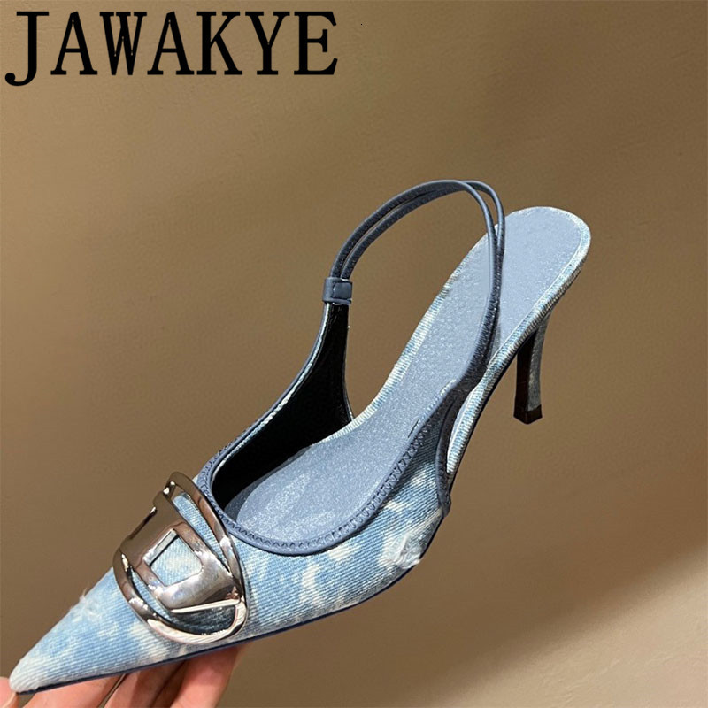 Dress Shoes Designer Brand High Heels Denim Blue Kitten Heel Slingbacks Pointy Toe Formal Dress Shoes Women Metal Decor Runway Party Shoes 230412, Black