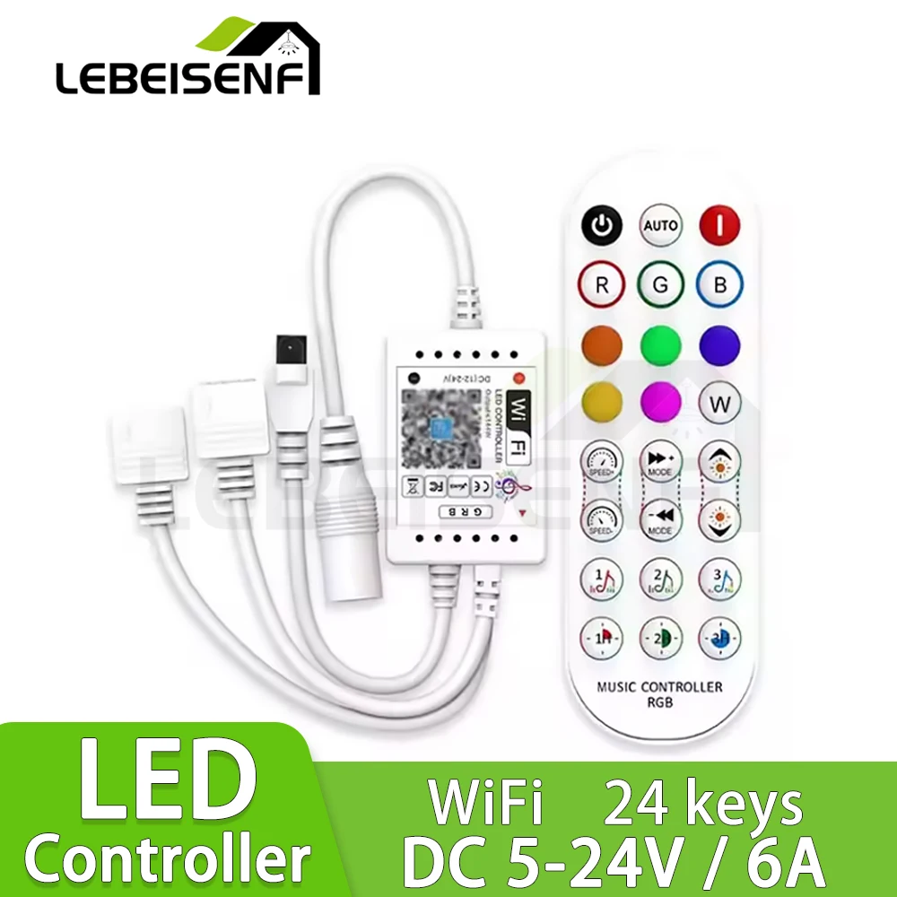 WiFi Dual-Head Dual-Output RGB Music Controller Smart Home Automation IR24-Key Remote LED Strip Lights Control
