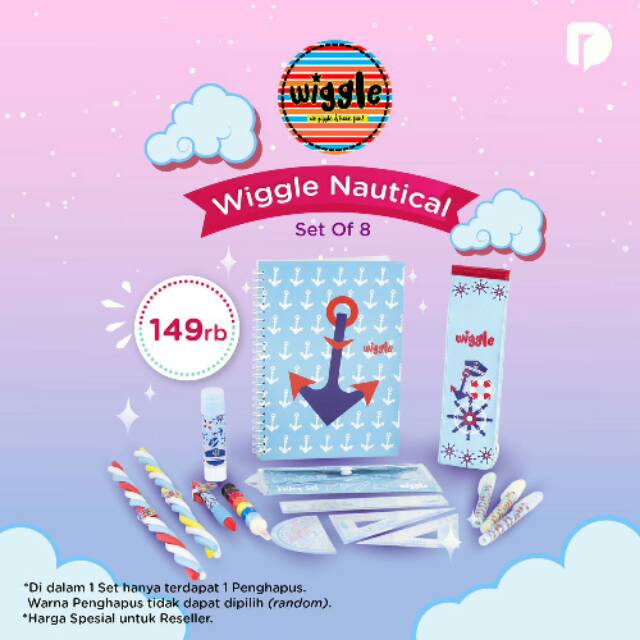 Wiggle Nautical Set, alat tulis bertema pelaut yang didesain unik dan menarik. Alat tulis ini membantu meningkatkan semangat, kreativitas, dan minat belajar si kecil.